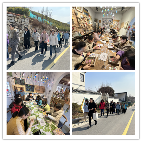 来到浦口响堂,大家兴致勃勃地开始了踏青寻春之旅。一路上阳光明媚,清风拂面,大家三五成群结伴而行,踏着轻快的步伐前往桃源谷,巾帼风采与初春美景相互映衬,形成了一道靓丽的风景线。在不老村,大家参加了“手作押花相框”制作,在认真观摩手工师傅示范的基础上,充分发挥想象力,用各种花卉素材“作画”,展示出不同的创意,每个人都收获了一份美丽而个性的作品。