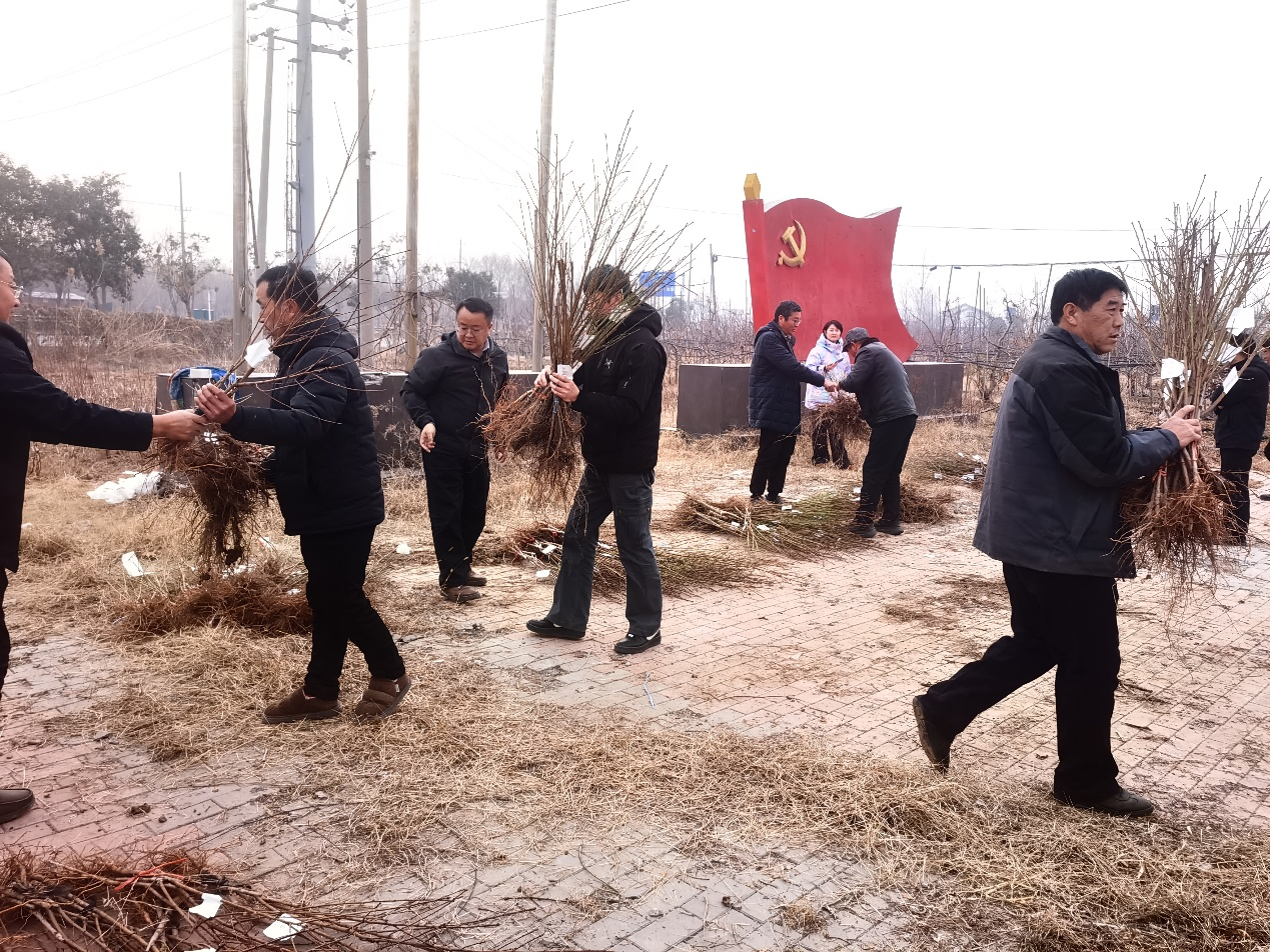 在沛县鹿楼现代果园示范基地,桃团队向沛县40余户果农免费发放了近2000株果树研究所自主选育的7个优良桃新品种苗木,涵盖入选江苏省农业主导品种的 ‘霞晖10号’‘紫金玉脆’,以及‘早醒系列’等多个适于苏北设施种植的低需冷量桃品种。这批桃苗将用于区域性适应性试验,通过三年观察其生长态势,筛选出最适合本地推广的主栽品种。“农科院不为推销桃苗赚钱,而是实实在在为我们服务,带来了市场上热销的甚至买不到的新品种。”领到桃苗的果农们喜笑颜开、连连致谢。