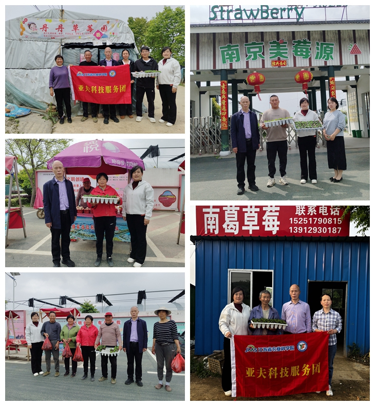 为推动亚夫科技服务项目“草莓新品种集约化育苗技术集成与示范应用”落地见效,4 月 17 日,果树所副所长、草莓创新团队负责人、项目技术顾问乔玉山研究员带团队骨干,联合江苏芃泰种业科技有限公司,赴溧水区东屏街道、洪蓝街道、白马镇开展 “送脱毒种苗到田头,面对面开展技术指导”专项服务,助力溧水区草莓产业提质增效、莓农增收致富。